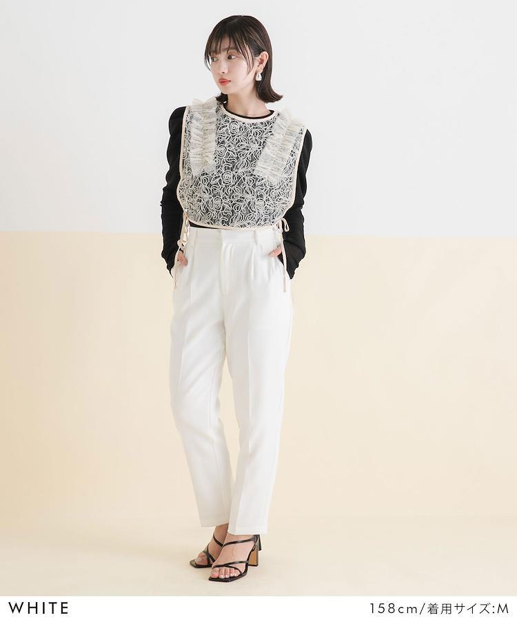 上品さと可愛らしさを兼ね備えたサイドリボンテーパードパンツ。