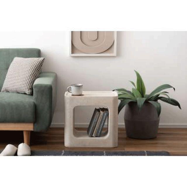 落ち着いた造形がオブジェのように美しいサイドテーブル。シンプルなラインでまとめたフォルムが空間に端正さを添え、控えめながら印象的な存在感をもたらします。素材感を引き立てる穏やかな色調が、インテリアに落ち着きあるリズムを生み、置く位置によって異なる雰囲気が楽しめるのも魅力です。サイドテーブルとしてはもちろん、特徴的なシルエットを活かしたディスプレイとしても取り入れやすく、空間にすっきりとしたアクセントを加えます。
