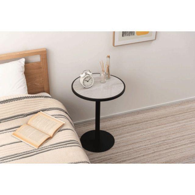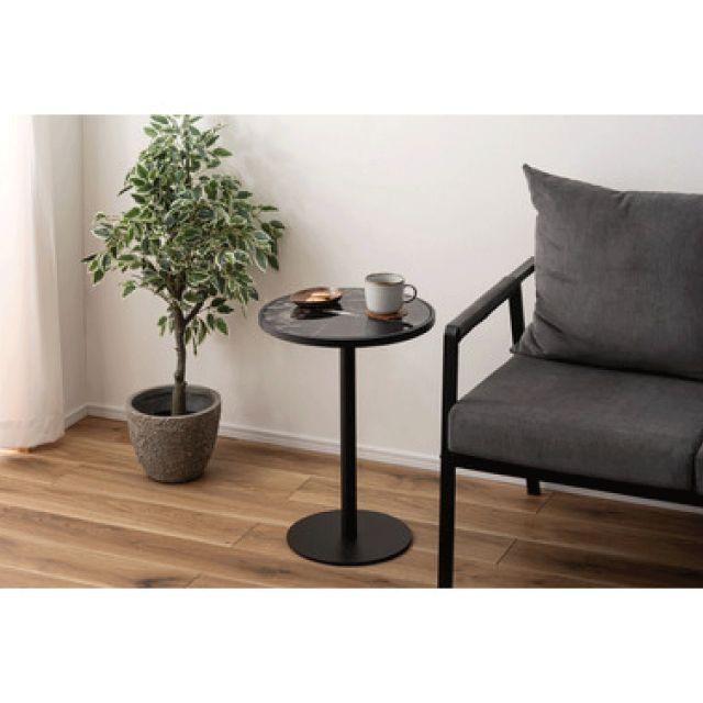 サイドテーブル ブラック ライトグレー 直径42cm 高さ55cm 机 ナイトテーブル コーヒーテーブル ソファテーブル ソファサイド ベッドサイド 石目調 一本脚 スリム シンプル リビング 寝室 玄関