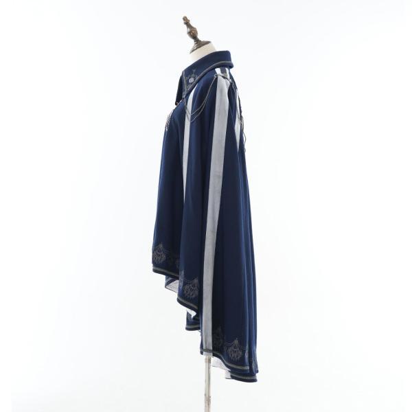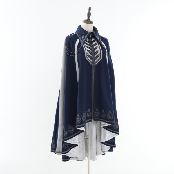 銀色の輝きをテーマに仕立てたケープコート。上質なウールと滑らかなベロア素材を組み合わせ、季節感のある温もりと上品な光沢を表現しました。防風性に優れた生地を使用し、冬のアウターとして頼れる一着です。