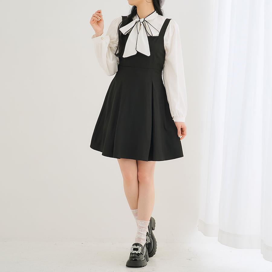 【デザイン】フィット感のある綺麗なシルエットと自然なドレープ感裾のフレア分量をたっぷりにしたことで、女性らしいスタイルに仕上がります。最大のポイントは高めのウエスト切り替えと、ローウエストから始まるフレア切り替え♪お腹まわりにボリュームが来ない設計で、着るだけで細見え効果抜群。肩紐も細すぎない太さで、肩周りもほっそり見せてくれます。前はあえてシンプルに、どんなトップスとも合わせられるデザインで後ろの大きめリボンが存在感をUP◎ご自身で結んでいただく仕様なので、リボンの大きさをお好みで調整できるのも嬉しいポイントです。