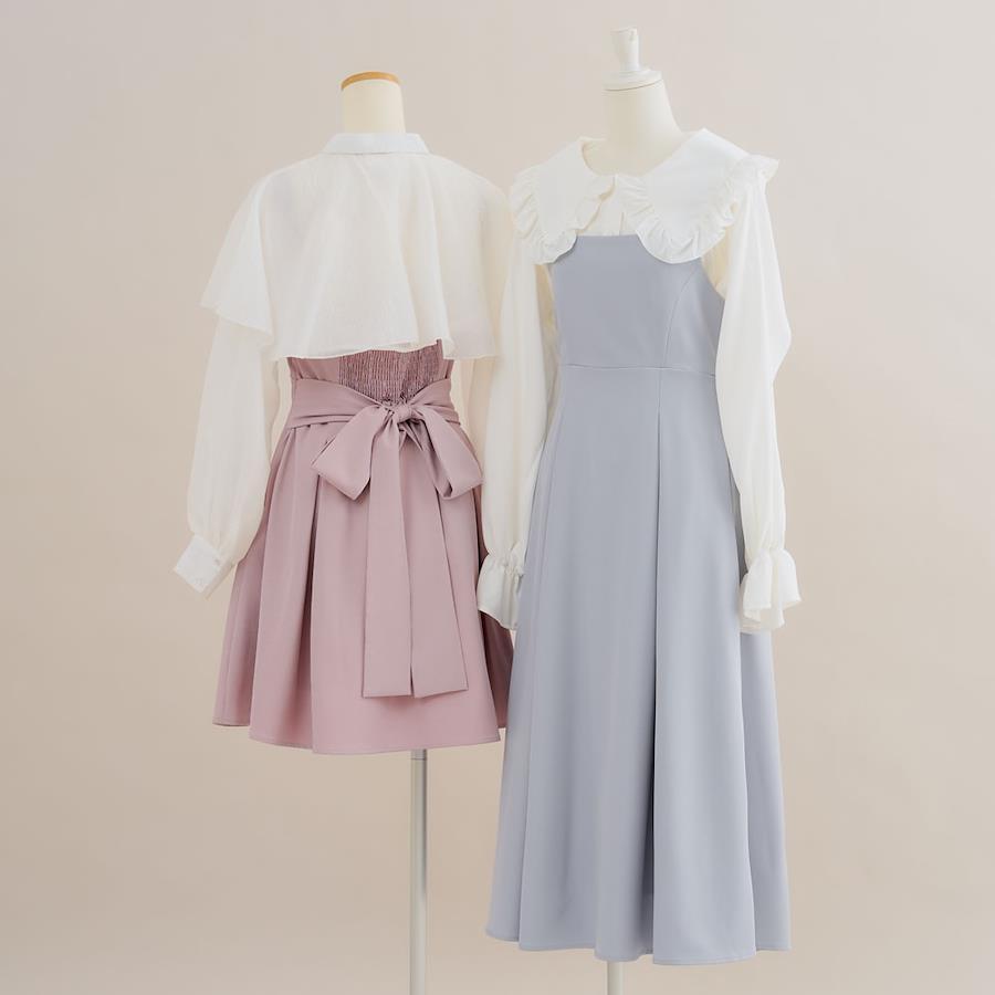 【デザイン】フィット感のある綺麗なシルエットと自然なドレープ感裾のフレア分量をたっぷりにしたことで、女性らしいスタイルに仕上がります。最大のポイントは高めのウエスト切り替えと、ローウエストから始まるフレア切り替え♪お腹まわりにボリュームが来ない設計で、着るだけで細見え効果抜群。肩紐も細すぎない太さで、肩周りもほっそり見せてくれます。前はあえてシンプルに、どんなトップスとも合わせられるデザインで後ろの大きめリボンが存在感をUP◎ご自身で結んでいただく仕様なので、リボンの大きさをお好みで調整できるのも嬉しいポイントです。