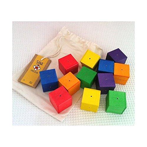 ■商品説明対象年齢:1歳前後から 材質:木 セット内容:6色(赤、青、黄、橙、緑、紫)×2 計12個、布袋付?もっと見る色ごろに、違う音色の木片や鈴が入っています。振ると、やさしい、いい音がします。中が空洞になっています。赤ちゃんの小さい手にも軽く、そして音がやさしく響く作りです。 積み木として積むほかに、振って音を鳴らして遊んだり、色あてをしたり。同じ4cm角の積み木と組み合わせたりすると、大きくなっても遊べます。 立方体の大きさは4cm角。赤ちゃんに持ちやすい大きさです。塗料は赤ちゃんがなめても大丈夫なものをつかっています。