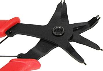 用途:スナップリング軸、穴タイプの着脱特徴1:1丁で2役の軸・穴兼用タイプのスナップリングプライヤー特徴2:C型止め輪の着脱に使用リング使用範囲:径10~40mm適応範囲:(穴用)直爪1.2mm・(軸用)45度曲爪1.4mm、直爪1.2mm