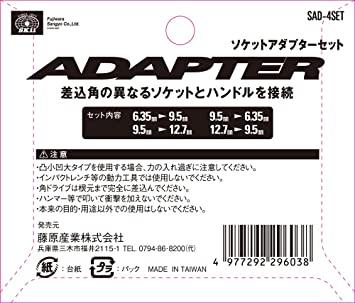 用途:差込角の異なるソケットとハンドルの接続入数:4種類セットセット内容:6.35mm(1/4インチ)→9.5mm(3/8インチ)、9.5mm(3/8インチ)→6.35mm(1/4インチ)9.5mm(3/8インチ)→12.7mm(1/2インチ)、12.7mm(1/2インチ)→9.5mm(3/8インチ)材質:クロームバナジウム鋼