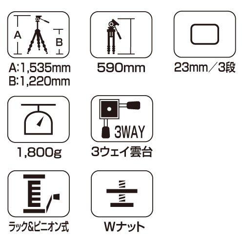 メーカー型番 : 101582■全高 : 1535mm■エレベーター下げ全高 : 1220mm■縮長 : 590mm■重量 : 1800g■最大搭載重量 : 2kg?もっと見る