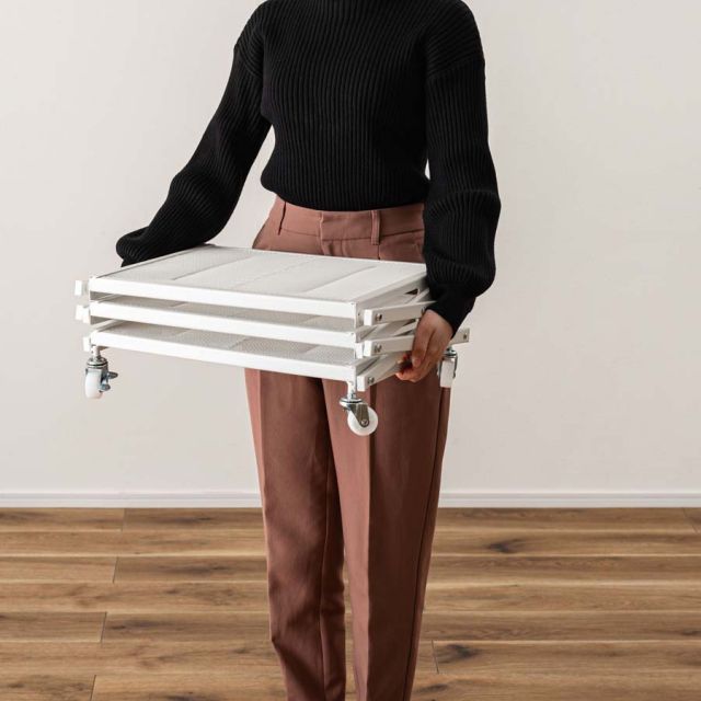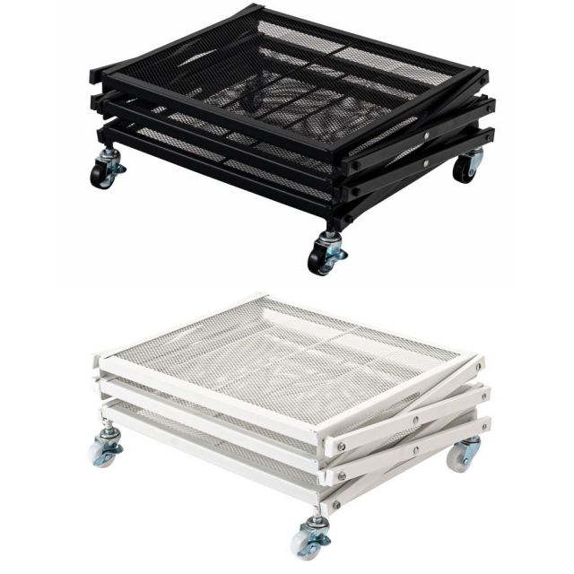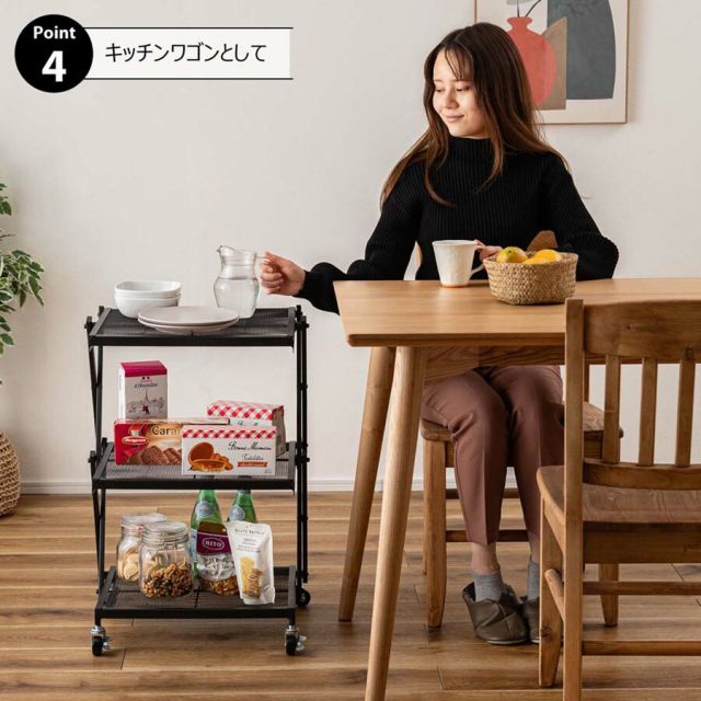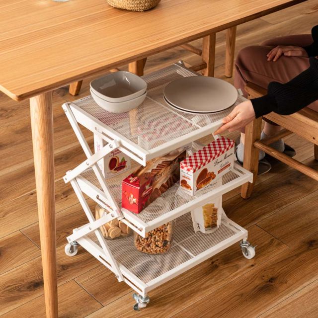 ラック折りたたみ折りたたみラックキャスターストッパー付き高さ調整3段スチールアイアンシンプルモダンホワイト白