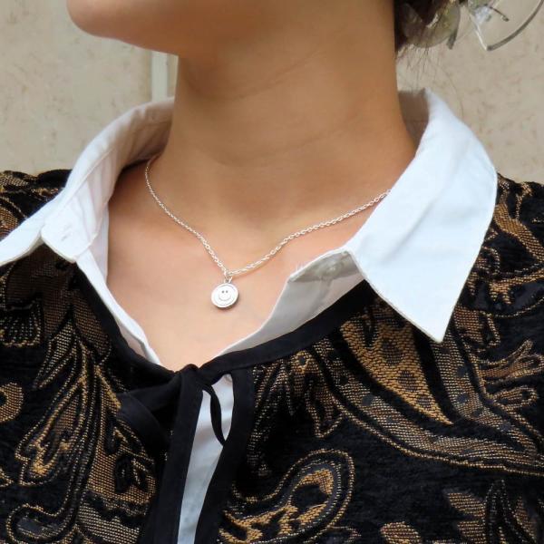 【モチーフ】 スマイル、スマイルマーク、スマイリーフェイス、ニコニコ、ニコニコマーク 【モチーフ意味】 世界中で愛されているマーク スマイリーフェイスは黄色い円に黒色で描かれた笑った顔のデザインです。 スマイルマークには幸せ、前向き、希望、ポジティブシンキングと言った意味があります。 ◆商品名 スマイルマークネックレス(PDT-378) ◆素材 シルバー925 スターリングシルバー ◆ペンダント寸法 直径=12mm(スマイルマーク部分) ◆チェーン長さ 35~60cmの中からお好みの長さをお選び下さい。 1.8mm シルバー925 小豆チェーン ◆付属品 ジュエリーBOX、ショップ袋、品質保証書 *プレゼント梱包出来ます ◆実店舗 Grand Galleria(グランドガレリア) JR帯広駅より徒歩5分の場所にある2012年オープンのフラッグシップショップ。 ジュエリー工房を併設し、常駐する職人自らと打ち合わせも可能なため、修理や加工、お客様のご希望に沿ったジュエリーもお作りすることが可能です。 ◆オススメ使用シーン ・様々な贈り物に プレゼント 贈り物 誕生日 誕プレ 誕生日プレゼント バースデー バースデイ 御祝 御祝い お祝い 母の日 父の日 クリスマス クリスマスプレゼント Xmas 春夏秋冬 成人 成人式 卒業 卒業式 進学 就職 入学 金婚式 銀婚式 出産 結婚 開店 開業 定年退職 退職 移動 転勤 バレンタイン バレンタインデー バレンタインデイホワイトデー ホワイトデイ ごほうび ご褒美 御褒美 ・想いを込めて ありがとう 感謝 ごめんなさい 許して ごめんね よろしく おめでとう おめでとうございます 仲直り ・こんな方に 自分 彼女 彼氏 大切な人 大切な方 お父さん お父様 父親 親父 父 お母さん お母様 母親 母 兄弟 姉妹 子供 おばあちゃん 祖母 おじいちゃん 祖父 奥さん 妻 旦那 旦那さん 先生 生徒 職場 先輩 後輩 上司 部下 同僚 友達 友人