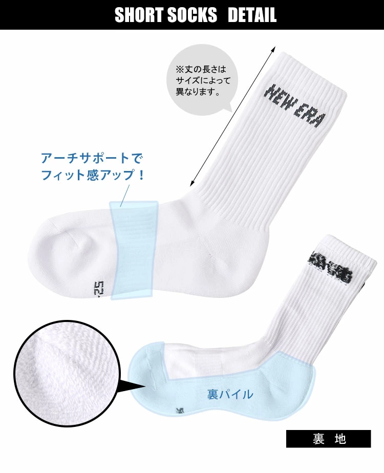 NEWERA(ニューエラ)からお得な3足組のクルー丈ソックスが入荷!ワンポイントロゴがおしゃれ!機能面も抜群で、アーチサポートでしっかりフィット!底パイルなので、クッション性があり、長時間歩いても痛くなりにくいです。サイズも4サイズに分かれており、あなたにぴったりの靴下を探せます!