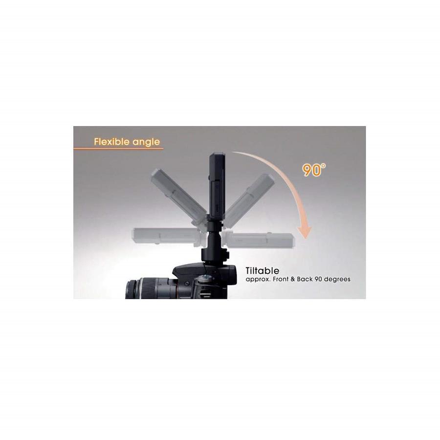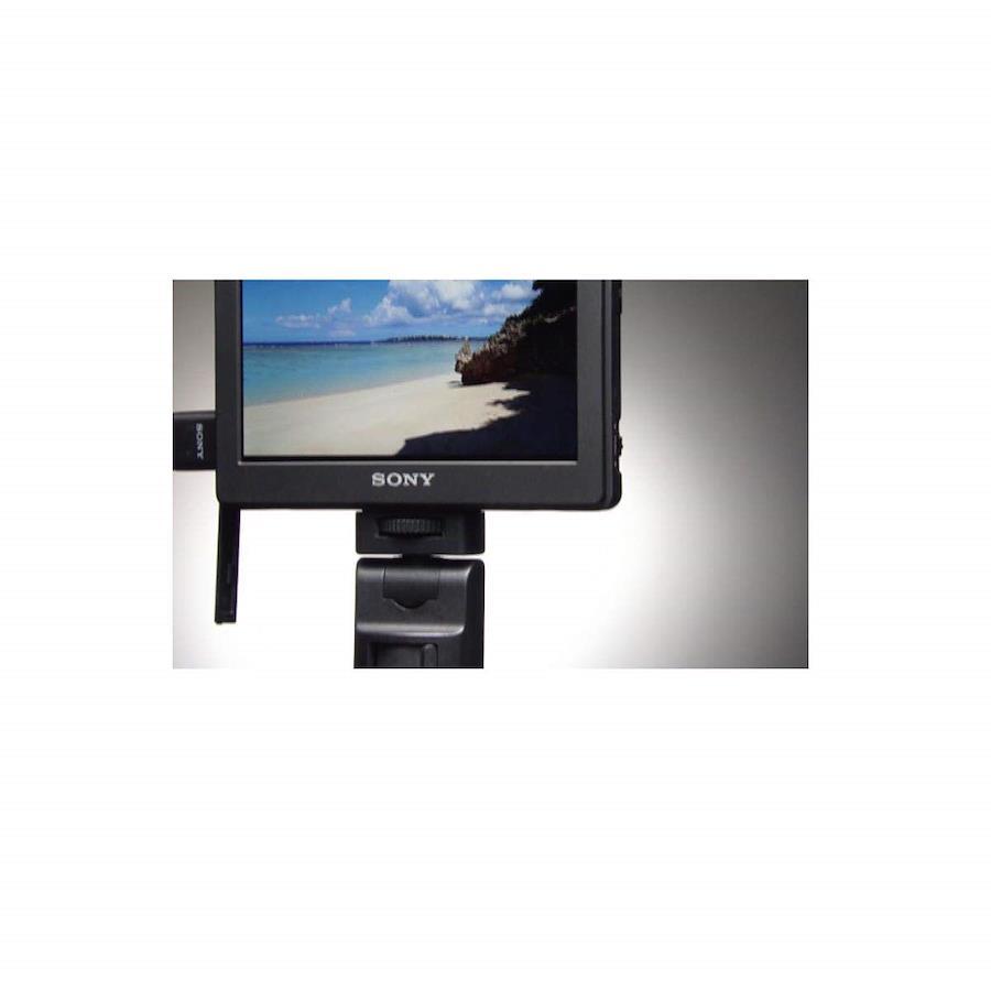 カメラ本体に取り付けられるシューアダプターを付属。本体に装着しても、前後約90度、左右約180度まで角度を変えられます。また、三脚ネジも付属し、ポータブルモニターを三脚に取り付けての撮影も可能です。また、付属のシューアダプター(ISO518形状準拠)は、HDMI端子およびライブビュー機能を搭載した他社製のレンズ交換式デジタル一眼カメラでも使用できます。