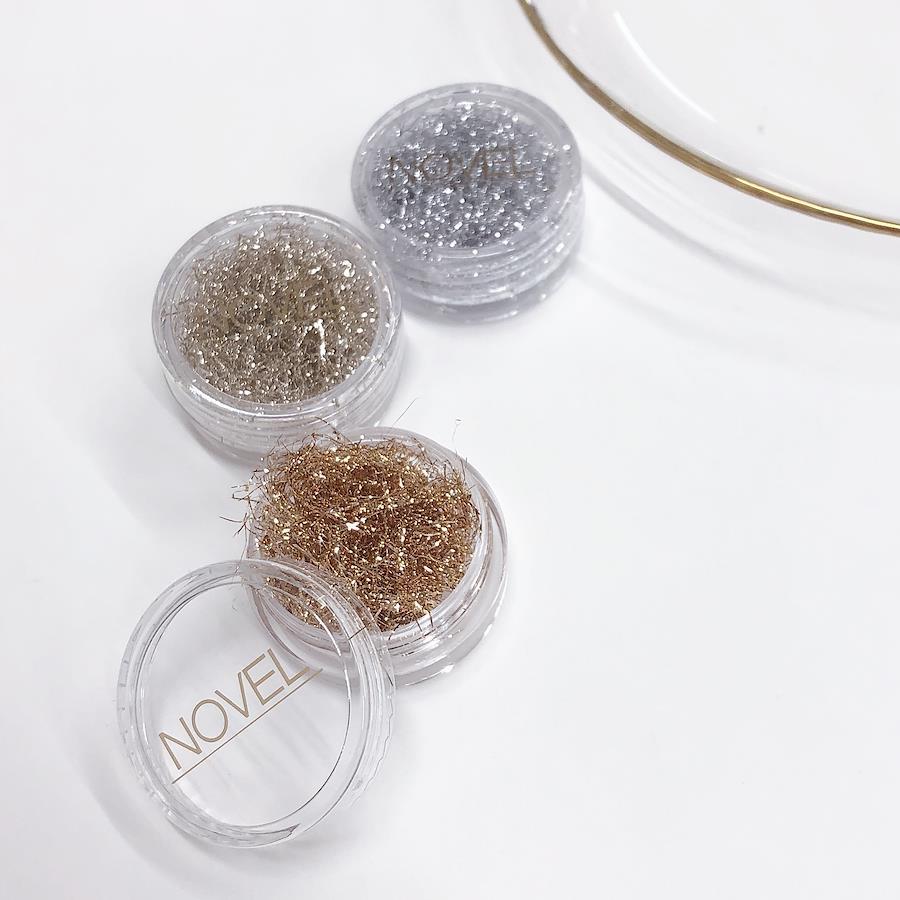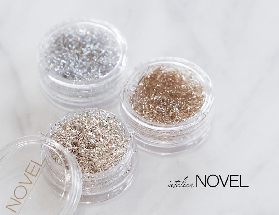 極細の糸状のホロになります。大変軽くて薄く埋め込みやすい為、アートのワンポイントにいかがでしょうか。上品な3色のカラー展開となっております。