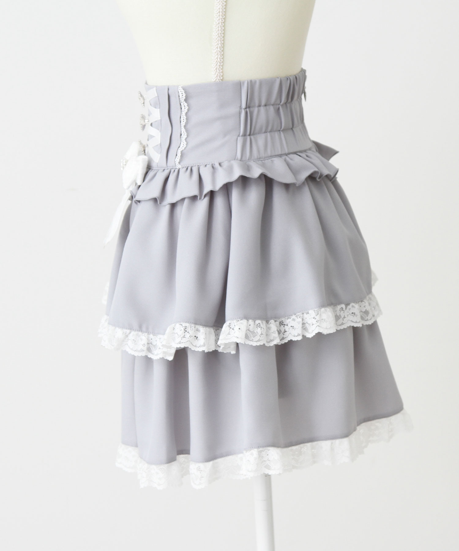 ウエストはキュッとスカートはレースフリルたっぷりでふわっと広がるシルエット感がかわいく