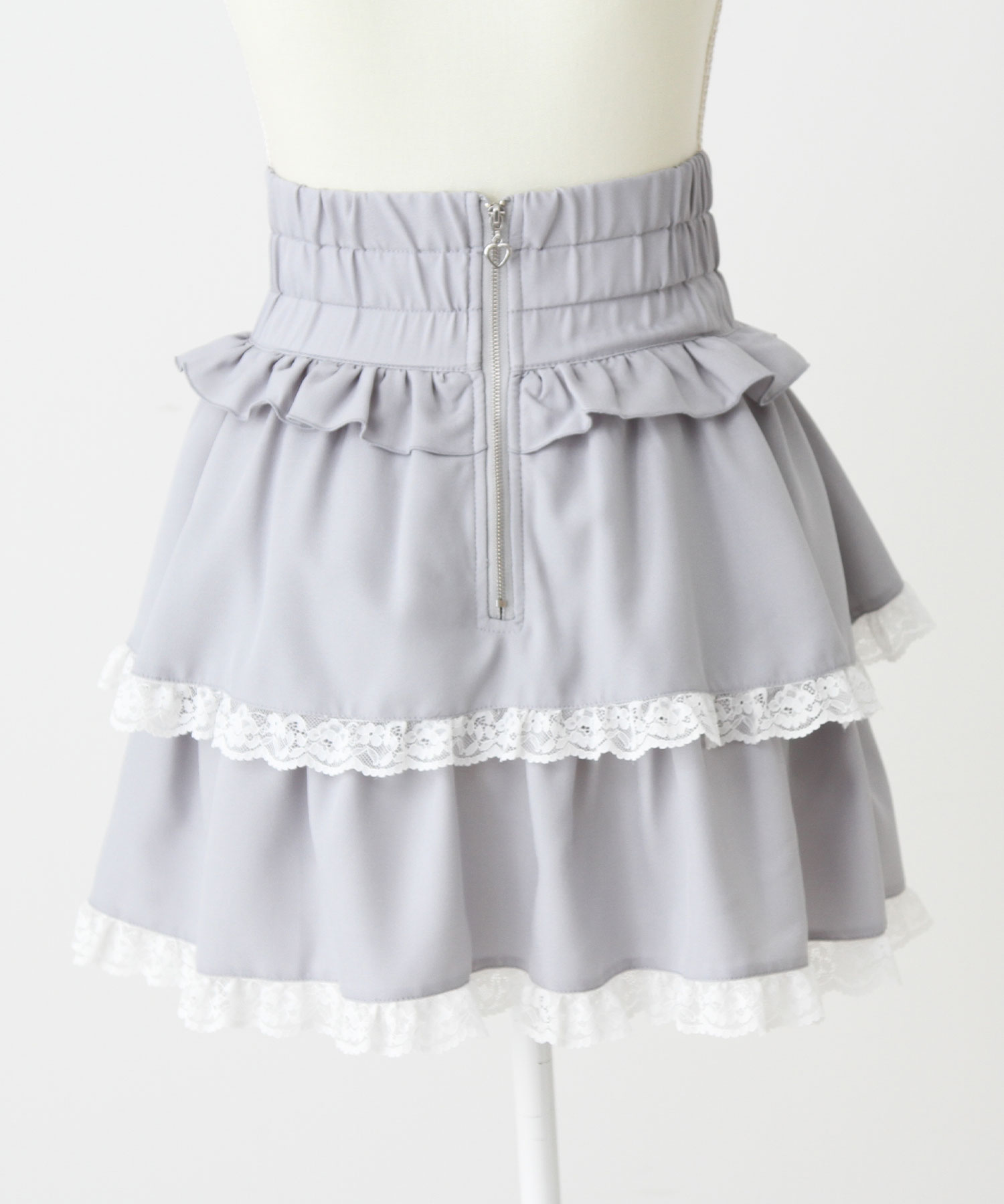 ウエストはキュッとスカートはレースフリルたっぷりでふわっと広がるシルエット感がかわいく