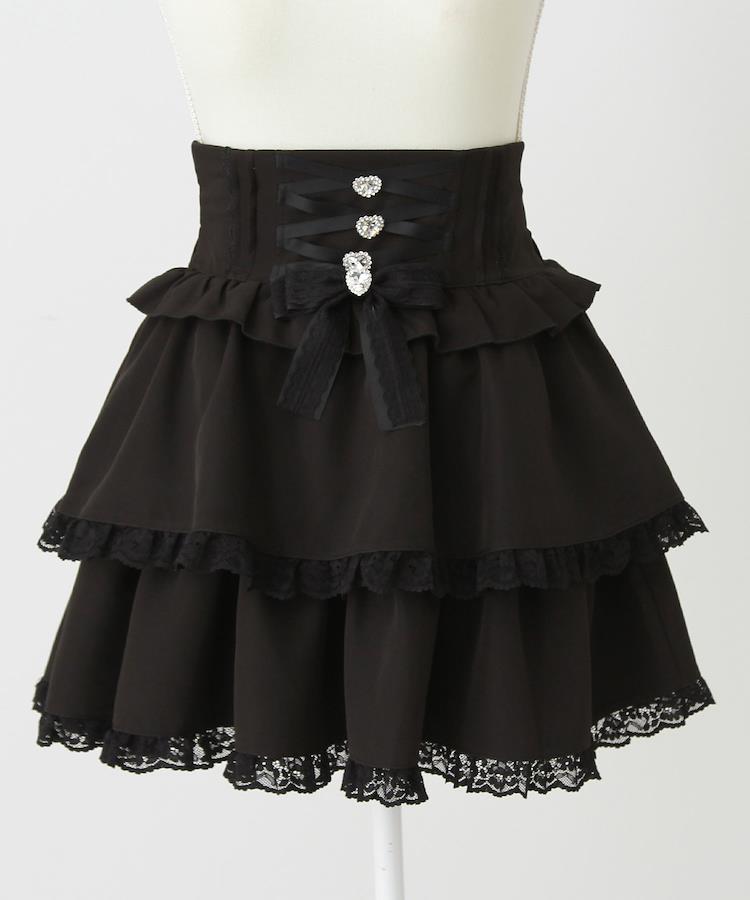 ウエスト部分はレースアップデザインになっていて、中心にビジューがついています。