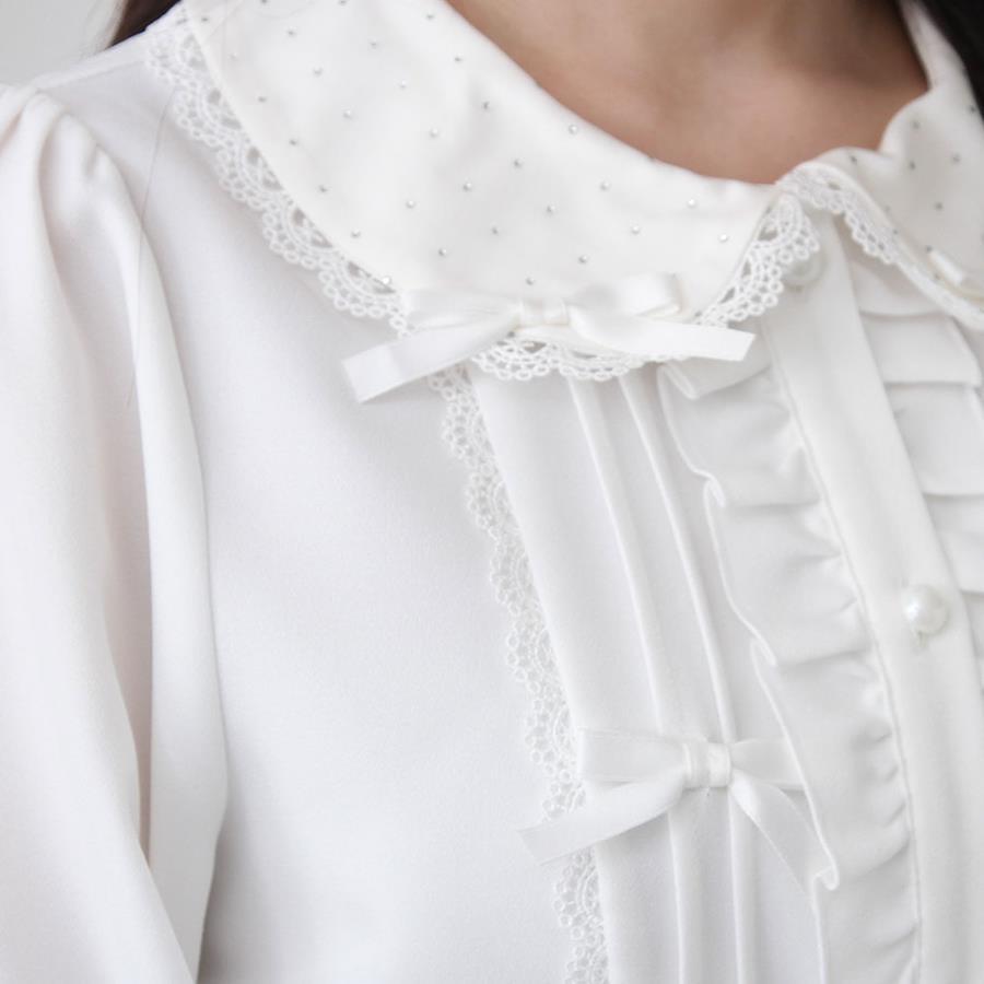 襟とカフスにキラキラビジューのレースが重なっている可愛すぎるブラウスです。