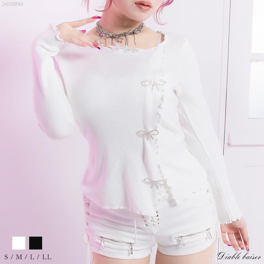 シンプルでありながらキラキラと輝くリボンパーツがアクセントになった女性らしいトップス。