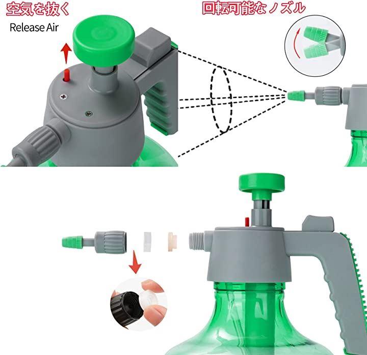 ・「空気圧」ポンプを押し引きして加圧した後、レバーのボタンを押すだけで手軽に連続噴射ができる蓄圧式の噴霧器です。