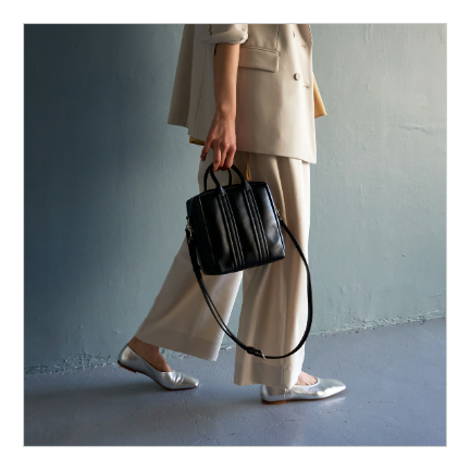 シックでシンプルな形状はどんなコーディネートにも合わせやすく、メンズライクなスタリングにも合わせやすい。