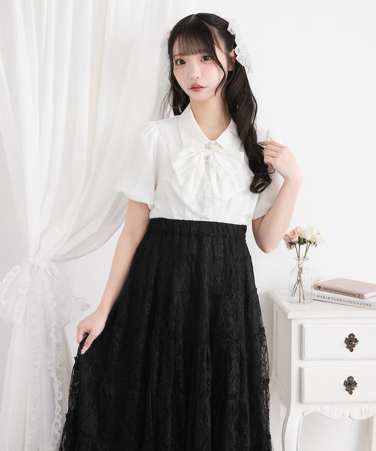 ミニスカートを合わせてとことんガーリーにいくもよし、ロングスカートを合わせてお姉さん風にいくもよしの万能ブラウスです。