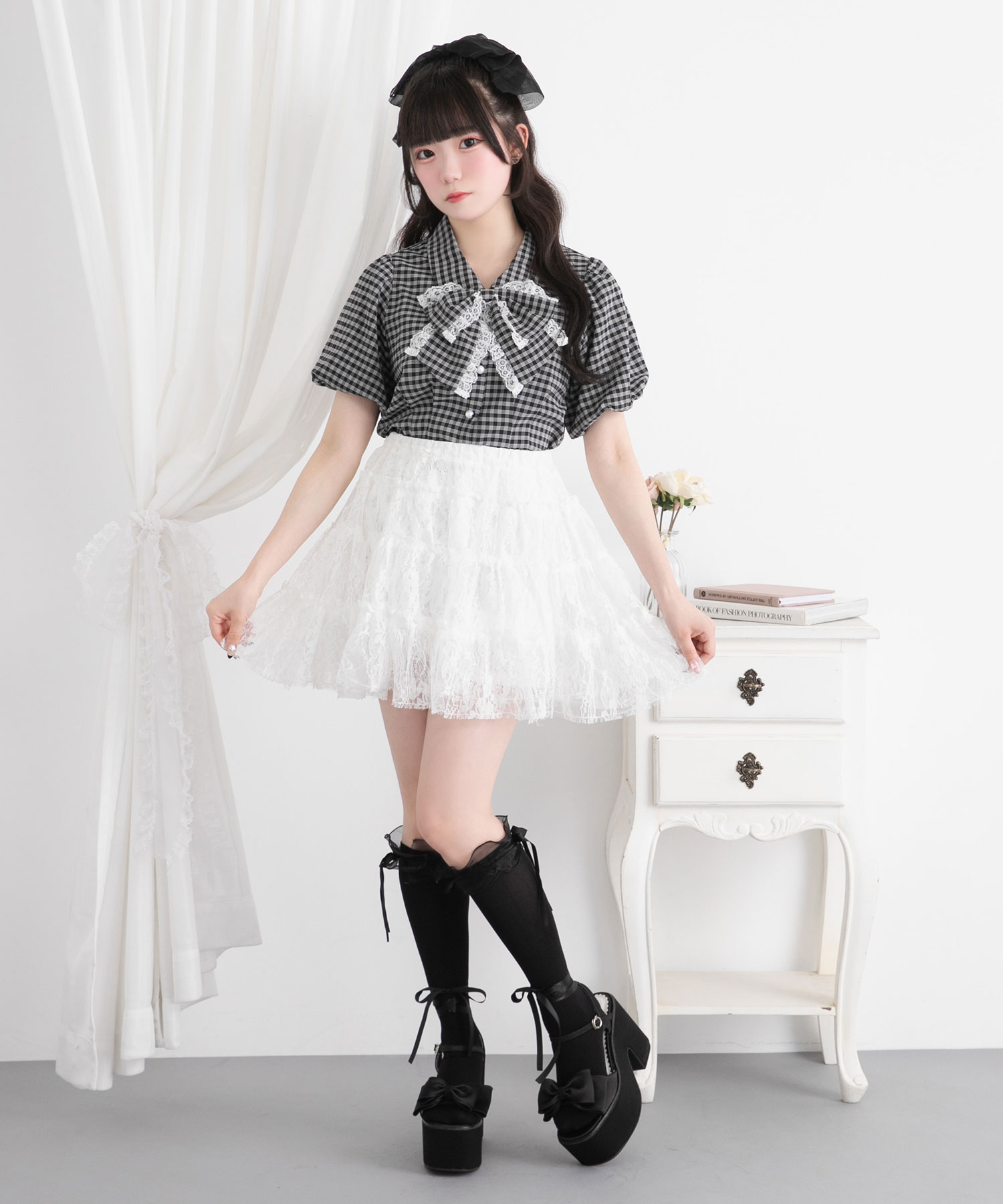 胸元のフリルリボンとふんわりパフスリーブが胸下界隈にもピッタリ!