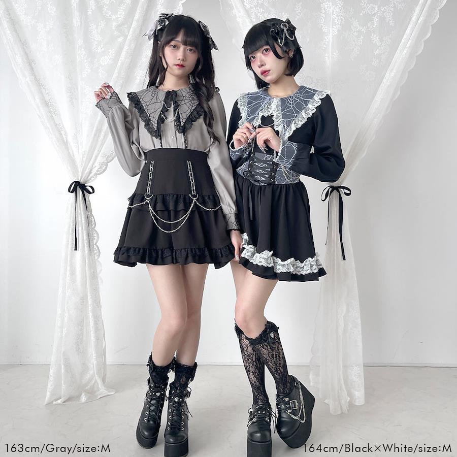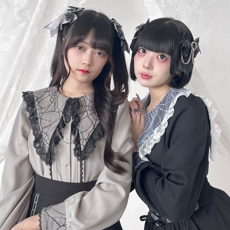 角襟に蜘蛛柄レース重ねていて、十字架柄レースフリルも付いています。