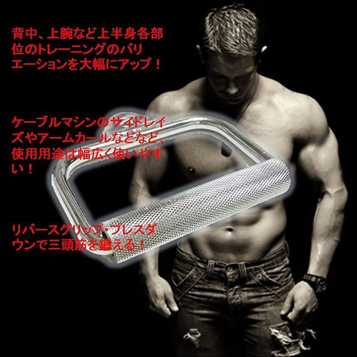 ・ラットマシンやマルチマックスなどケーブルマシンのアタッチメント。ケーブルクロスオーバーなど、ケーブルトレーニングには欠かせないアイテム。片手でプッシュを行うときにご使用ください。