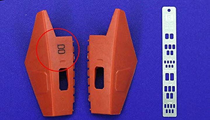 ・キャラクターモデル向けのパネルラインは複雑でスジボリするには技術が必要になりますが、 エッ チングガイドを使用すればステンレスの硬さがガイドとなり複雑な凹モールドをシャープに彫ることができます。