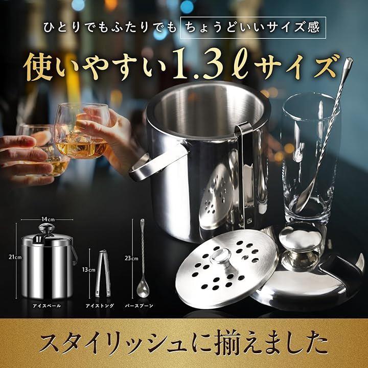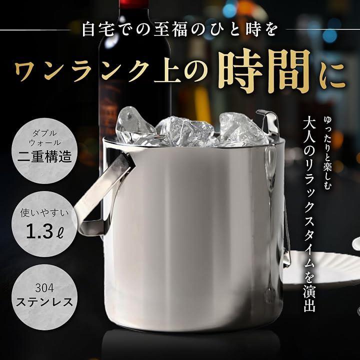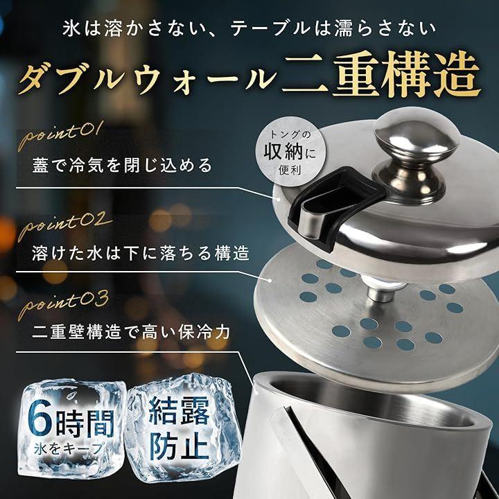 「ダブルウォール二重構造」ステンレス製ダブルウォール二重構造により、アイスペールで氷が長時間溶けにくく、冷たい飲み物を最後まで美味しく楽しめます。