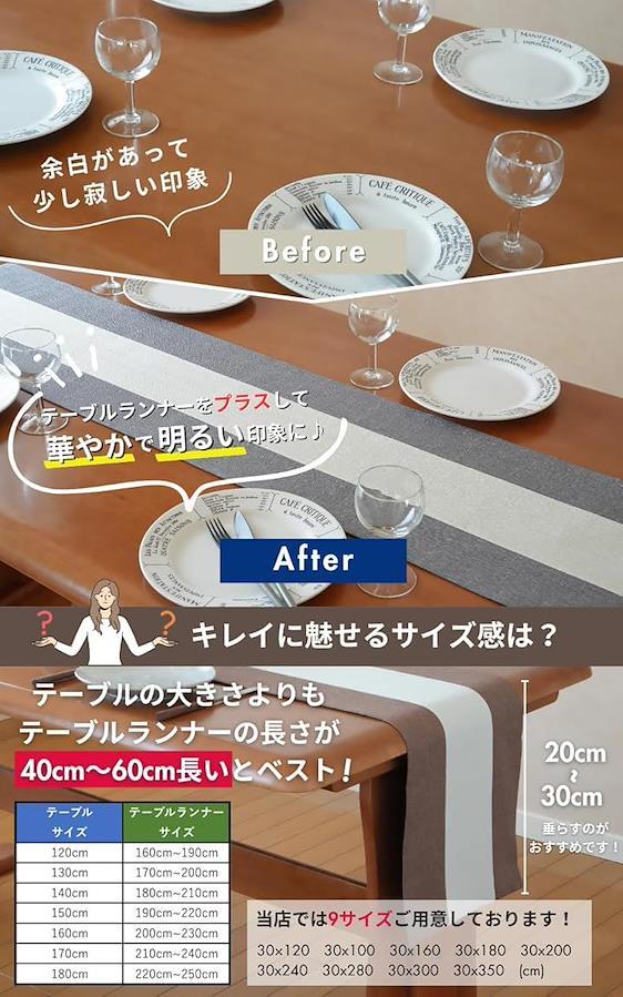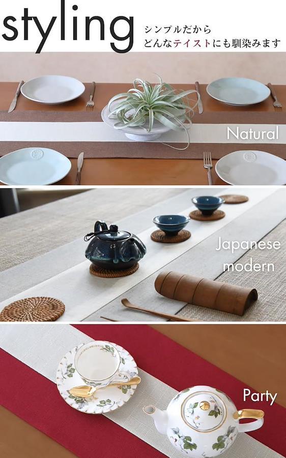 スタイリッシュな、和モダン、ホテルライクなどお洒落な雰囲気にぴったりなテーブルランナー。