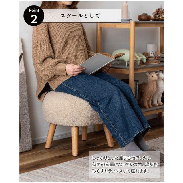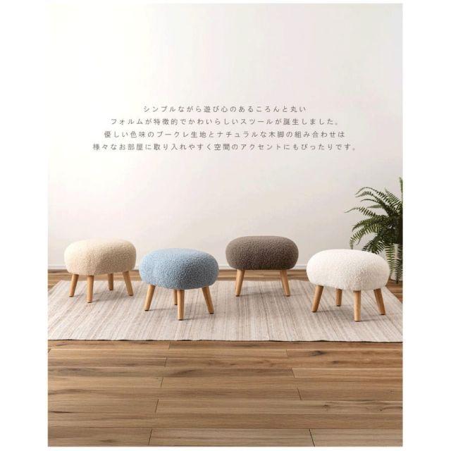 ●シンプルながら遊び心のある、ころんと丸いフォルムが特徴的でかわいらしいスツール。●優しい色味のブークレ生地とナチュラルな木脚の組み合わせは、様々なお部屋に取り入れやすく空間のアクセントにもぴったり。