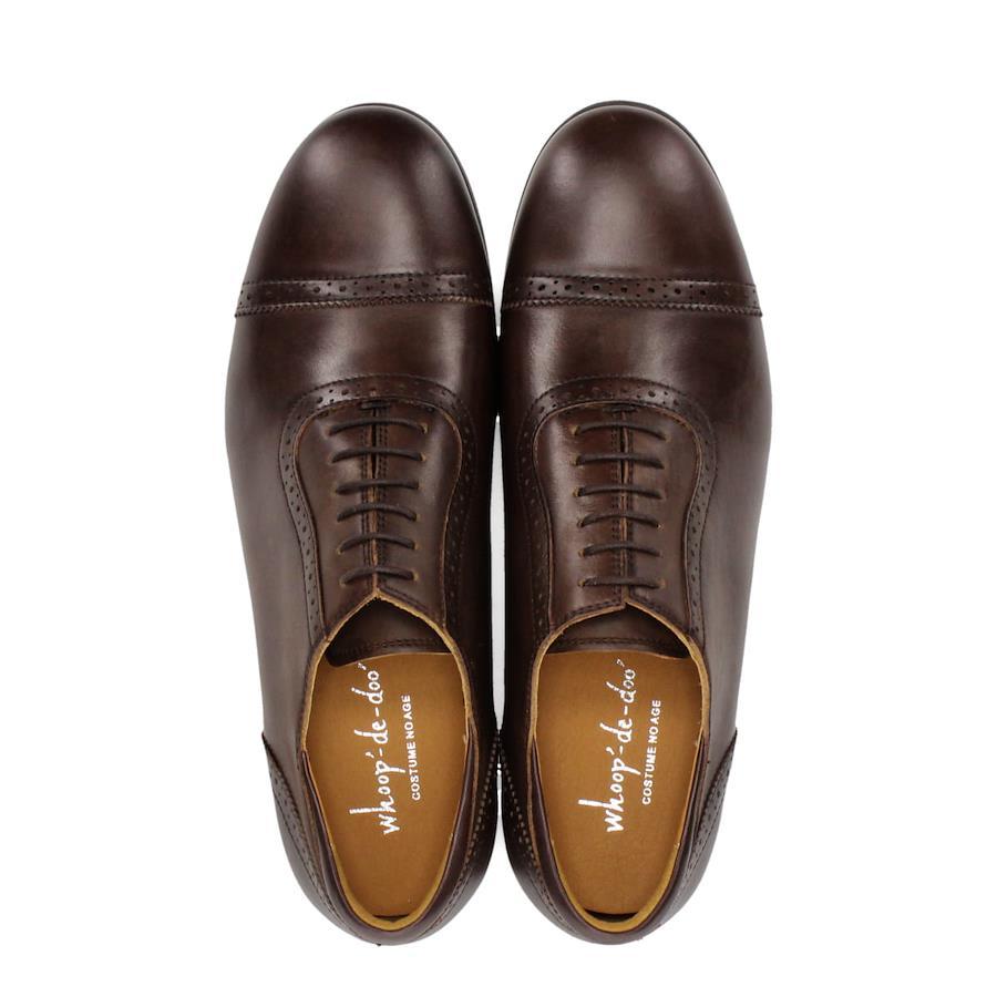 | ストレートチップオックスフォードシューズ 【素材】 足当たりの柔らかな牛革を使用したドレスカジュアルシューズ。 ※天然皮革を使用しているため、多少のシワや小傷、色ムラなどがございます。 【デザイン】 No.22130414をベースに革靴らしさを追加したことにより、様々な用途で使用できるモデルにモディファイしました。 シーズンにこだわらず程よく着崩しができるのがポイント。 【サイズ】 ※普段通常の革靴で25.5cm、スニーカーで26.5-27cmを着用するスタッフで<41/25.5cm>でジャストサイズでした。 ※サイズ感は、個人差がございますのであくまで参考程度にお考えください。 ■ブランド...whoop'-de-doo' costume no age ■カラー...BLACK ,DARK BROWN ■アッパー素材....牛革/一部羊革 ■底材.....合成ラバー ■ヒール...約2.9cm ■重さ(片足)...約417g ■中国製 *上記は全て25.5cmで計測した数値です。 *多少の誤差が生じる場合がございますので予めご了承下さい。 【サイズ選びのご参考に】 ※普段通常の革靴で25.5cm、スニーカーで26.5-27cmを着用するスタッフで<41/25.5cm>でジャストサイズでした。 ※サイズ感は個人差がございますので参考程度にお考え下さい。 whoop de doo co.,ltd whoop'-de-doo' フープディドゥ |