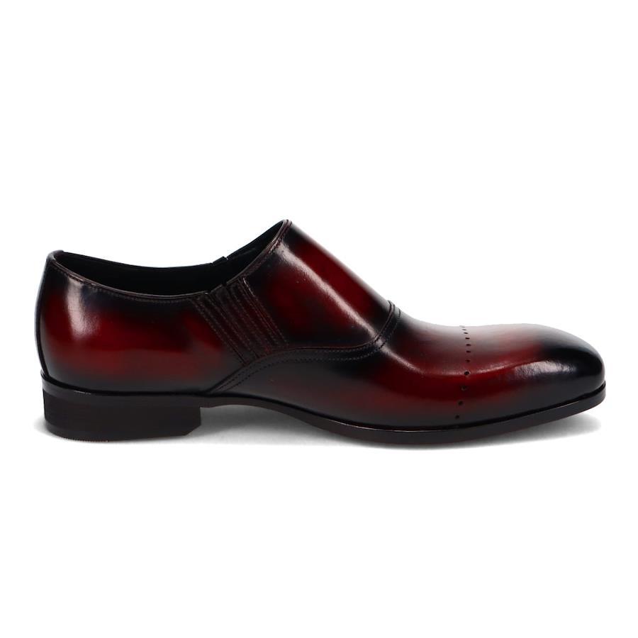 | グラデーションが美しい国産ドレススリッポン 【素材】 二層に色付けされたカウレザーを、熟練の職人技で上の色層だけ手作業で落としていき、深みのある革に仕上げました。 ※本革を使用している為、多少のムラや小傷などがございます。また手作業による仕上げの為個体差がございます。予めご了承ください。 【デザイン】 甲からつま先にかけてエッジの効いたエレガントなフォルムが、洗練された足元を演出するドレッシーな一足。 最小限の意匠として施されたメダリオンが、ちょうどよいアクセントになっています。 アンティーク家具のような深みのあるグラデーション仕上げは、数少ない国内職人による希少な技術によって仕上げられ、同じものが二つとないオンリーワンな仕上りです。 サイドエラスティック仕様で脱ぎ履きしやすく、底材を軽量化し使いやすくしたのも魅力の一つです。 フォーマルな場面や、普段のビジネスシューズとしてもおススメの一足です。 【サイズ】 革靴で25.5cm、スニーカーで26.5-27cmを着用するスタッフで<25.5cm>でジャストサイズでした。 ※サイズ感は、個人差がございますのであくまで参考程度にお考え下さい。 ■ブランド...whoop-de-doo costume no age ■カラー...BLACK,DARK BROWN,WINE ■アッパー素材....牛革 ■底材.....合成ラバー ■ヒール...約3cm ■重さ(片足)...約363g ■日本製 *上記は全て25.5cmで計測した数値です。 *多少の誤差が生じる場合がございますので予めご了承下さい。 whoop de doo co.,ltd whoop'-de-doo' フープディドゥ |