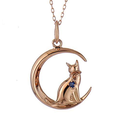 SUEHIRO ネコ ダイヤモンド ピンクゴールド ペンダント ネックレス 猫 9月 誕生石 サファイヤ
