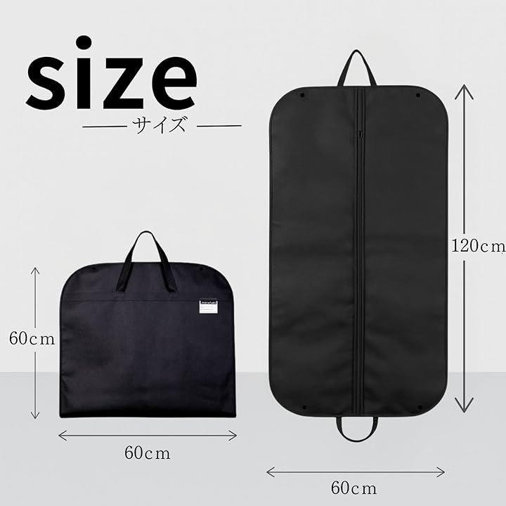 黒色のシンプルなデザインで、持ち運び用のガーメントバッグとしても使いやすく、洋服カバーや衣装カバーとしてもおすすめです。