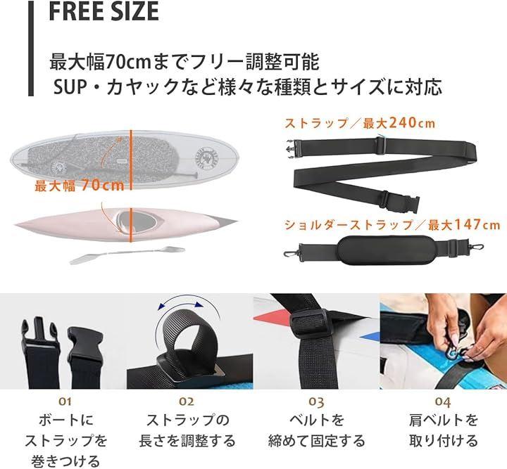 汎用タイプで最大幅70センチのパドルに装着可能、サイズに合わせて長さを調整するだけ。