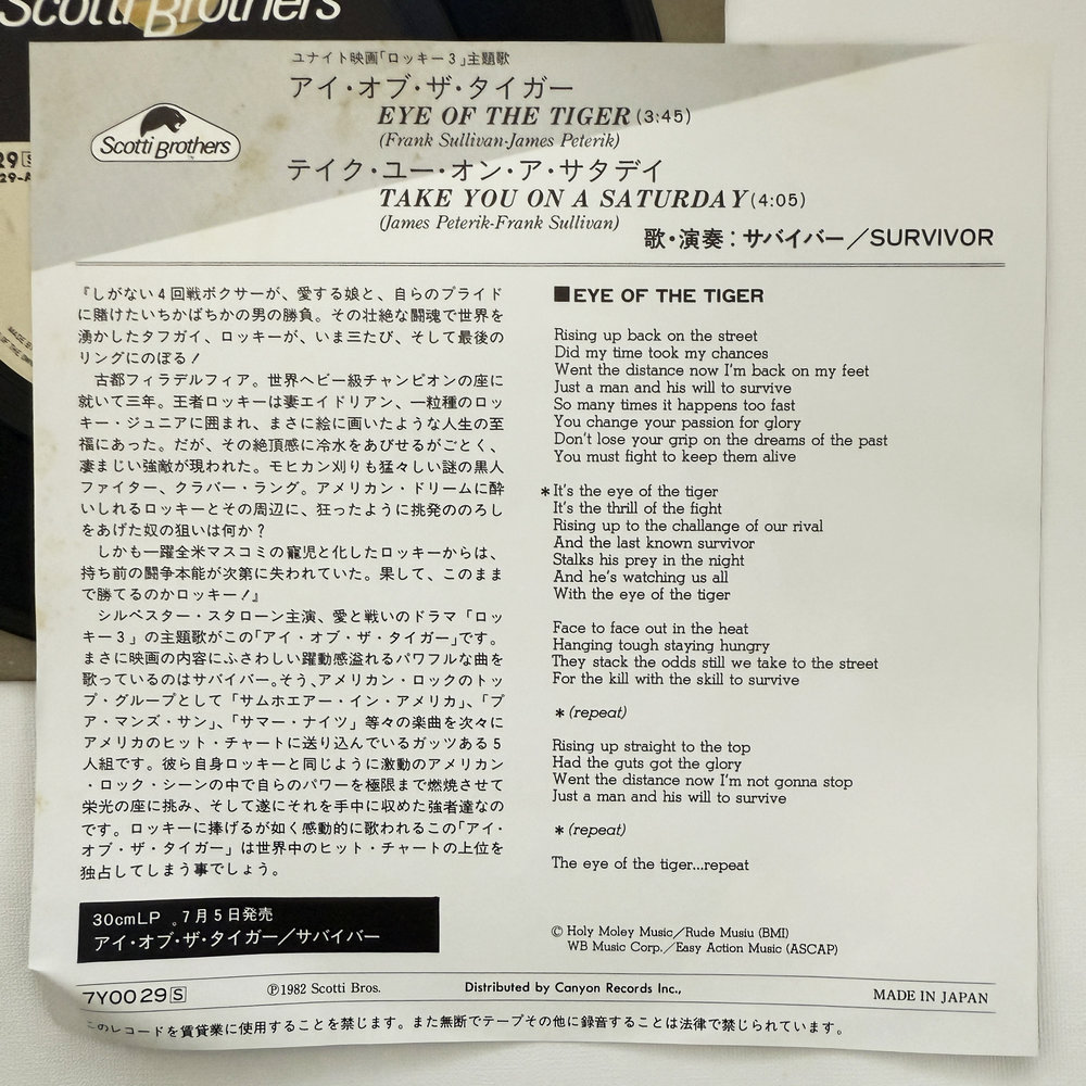 Survivor Eye of the Tiger Take You on a Saturday EP Record 7-inch Single Extended Play