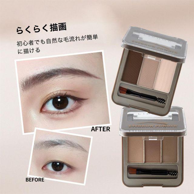 【簡単グラデーション】三色をブレンドしやすい柔らかな粉質。眉毛が薄い方も自然な立体感に仕上がります。初心者やメンズアイブロウにもおすすめ。