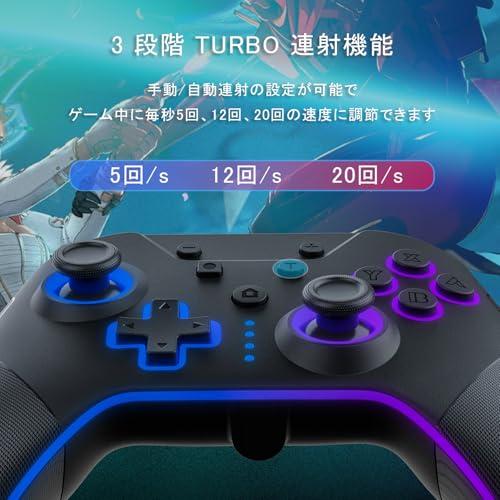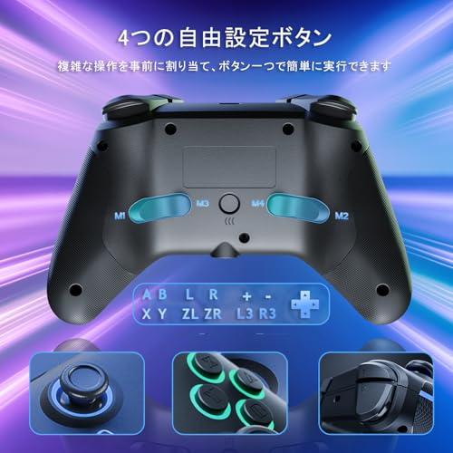 【全機能搭載&多機種対応&Bluetooth 5.2】 PeriphXが新たに発売したSwitch Proコントローラーは、ワンキーウェイクアップ、マクロプログラミング、無線接続、HD振動、TURBO連射機能、6軸ジャイロセンサーなど、豊富な機能を完備しています。Switch、Switch Lite、Switch OLEDのほか、Android、PC Windows 7/8/10/11、iOSにも対応。安定した遅延ゼロのBluetooth 5.2通信技術を採用し、接続速度が速く、瞬時に操作信号を伝達します。10メートル以内の通信範囲で100%の安定性を確保。また、1000mAhの大容量バッテリーを搭載し、Type-Cの高速充電ケーブルも付属しているため、長時間の使用にも安心です。 【極上の手触り&RGBライティング】 手にフィットするサイズ設計で、適度な重量です。ボディはABS樹脂製で、素晴らしい触感を実現しています。防滑設計により、手に汗をかいても滑りにくく、長時間の使用でも快適にお使いいただけます。ボタンは耐摩耗性の分子素材で作られており、しっかりとした感触があります。高精度のスティックは千回以上のテストを経て、完璧な感度を持ち、使用寿命は200万回に達します。また、ボタンやボディ周辺にはRGBライティング効果が施されており、三つの異なる呼吸モード、常時点灯モード、オフモードを搭載。これにより、RGBライティングが生み出す雰囲気の中で、より豊かなゲーム体験をお楽しみいただけます。 【6軸ジャイロセンサー&4つのマクロ機能ボタン】 高感度の6軸ジャイロセンサーを搭載し、傾きや動きを正確に感知します。視点移動や傾き操作が容易になり、より良いゲーム体験を提供します。また、Switchコントローラーの背面にはM1、M2、M3、M4ボタンがあり、マクロプログラミング機能をサポート。これらのボタンは、A/B/X/Y/L1/L2/R1/R2/ZL/ZR/L3/R3/上/下/左/右など、最大16の機能をプログラムでき、連続技や必殺技を一発で発動可能です。 【TURBO自動連射機能と4段階HD振動】 TURBO連射機能を搭載し、ゲームのニーズに応じて連射頻度(5回/秒→12回/秒→20回/秒)を設定できます。自動連射機能を使用すれば、ボタンを一度押すだけで20倍の攻撃力を発揮し、勝率をアップ!さらに、4段階の振動調整機能(0%/30%/70%/100%)を提供し、よりリアルなゲーム体験を実現し、よりリアルな衝突や振動を体感することができます。 【パッケージ内容&1年品質保証】 コントローラー本体×1、Type-C充電用ケーブル×1、取扱説明書×1が含まれています。PeriphXのSwitch Proコントローラーは出荷前に厳しい検査を受けています。製品に関する疑問や初期不良、使用中の自然故障などがあれば、いつでも販売者のカスタマーサービスにご連絡ください。24時間以内に迅速に対応し、解決策を提供します。