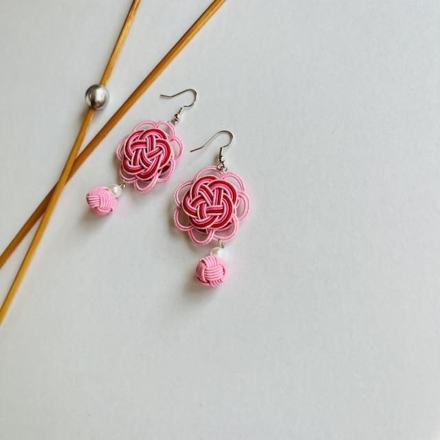 symmオリジナルブランド「Shigemi」シリーズ – 水引フラワーピアス(玉結び付き)
