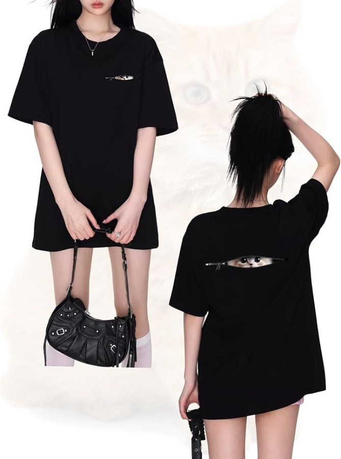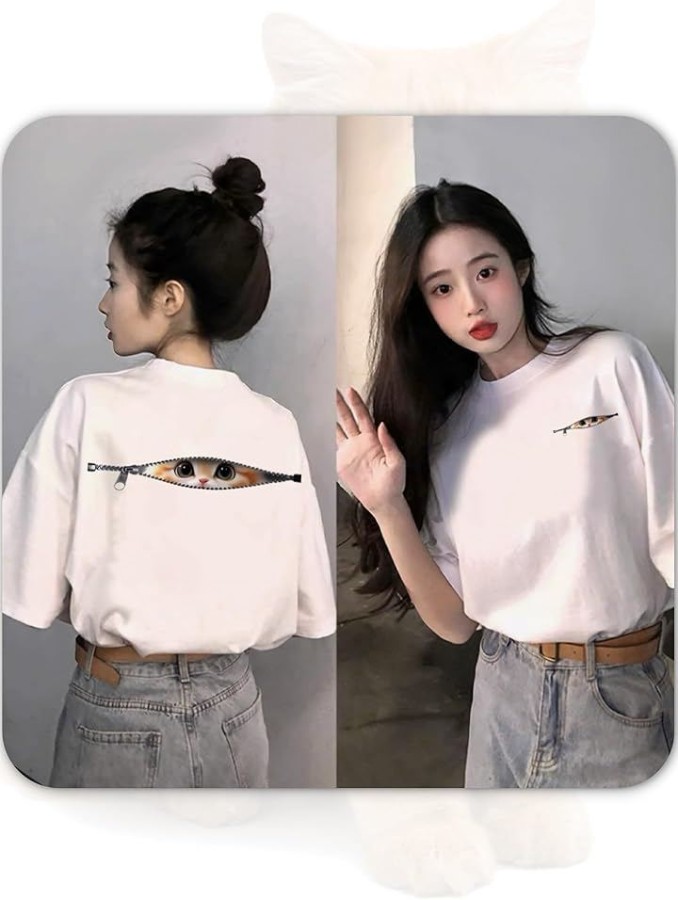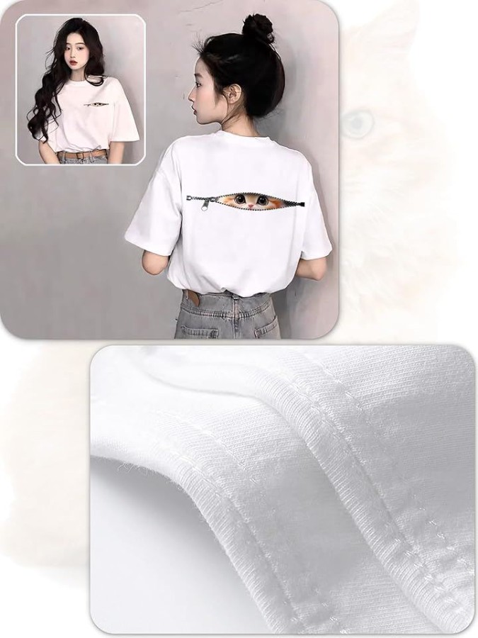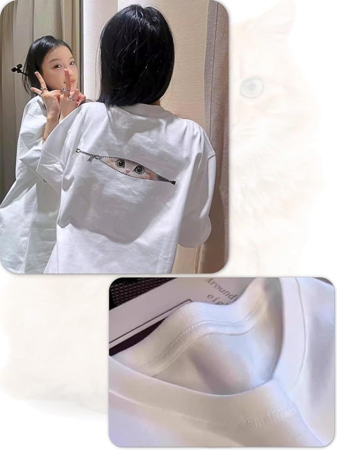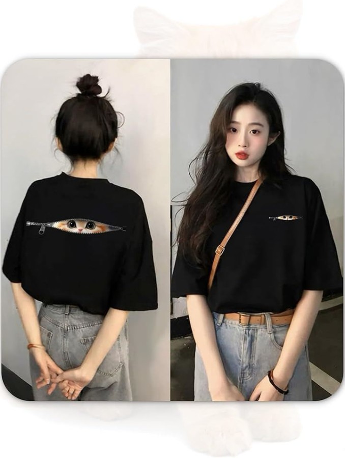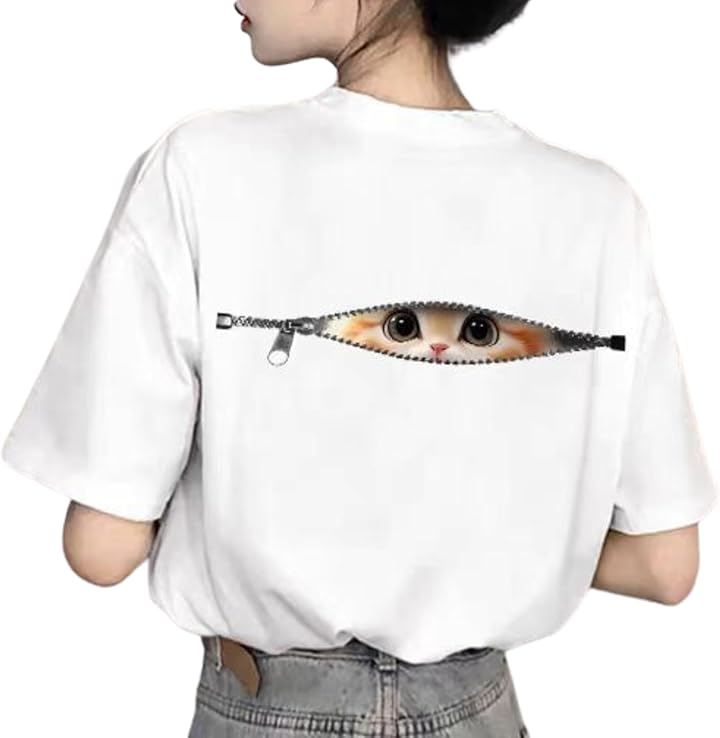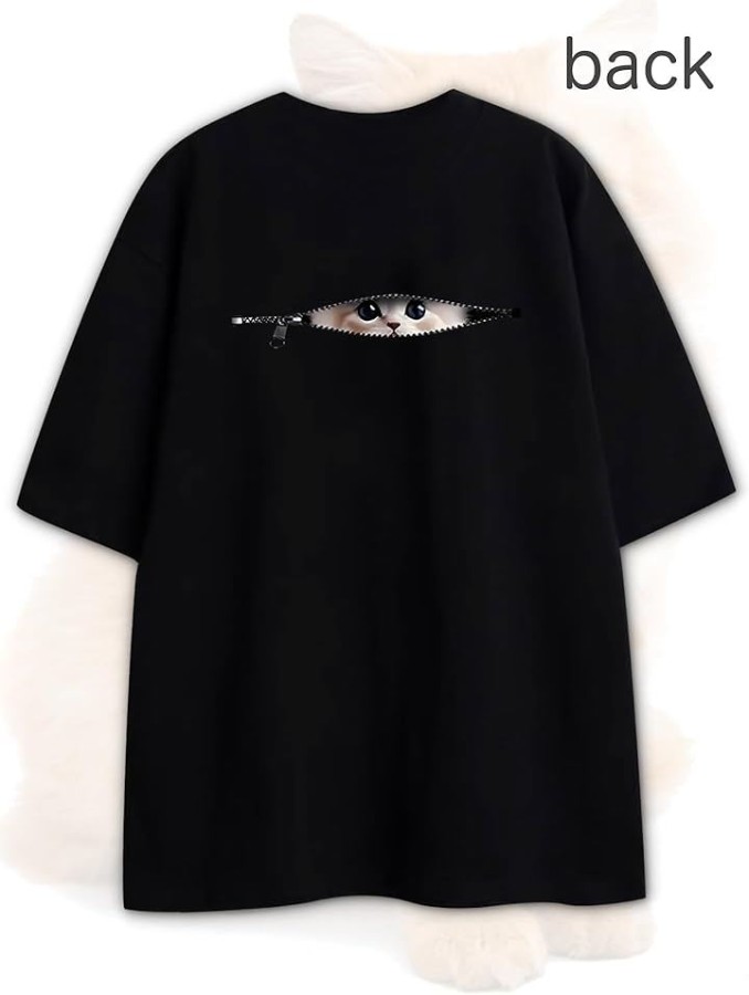 [ [ブブ オーハナ] Tシャツ ゆったり 大きめ こっそり見ている ネコ デザイン プリント カジュアル レディース ]