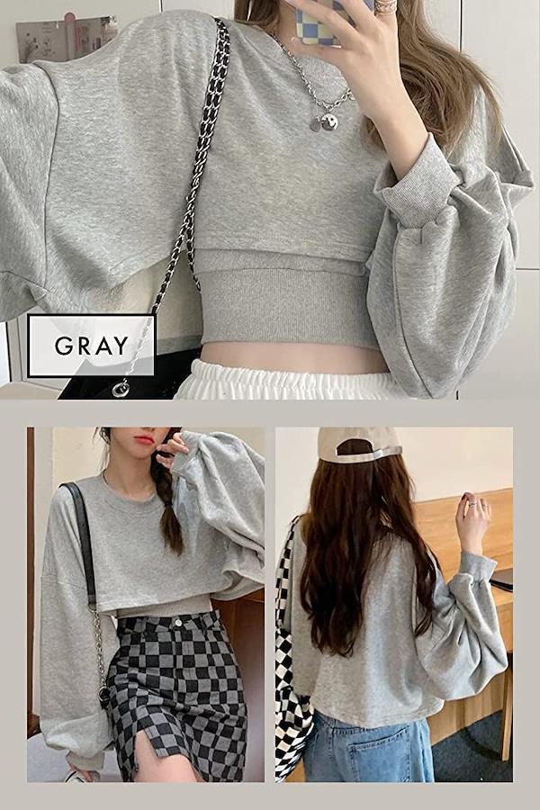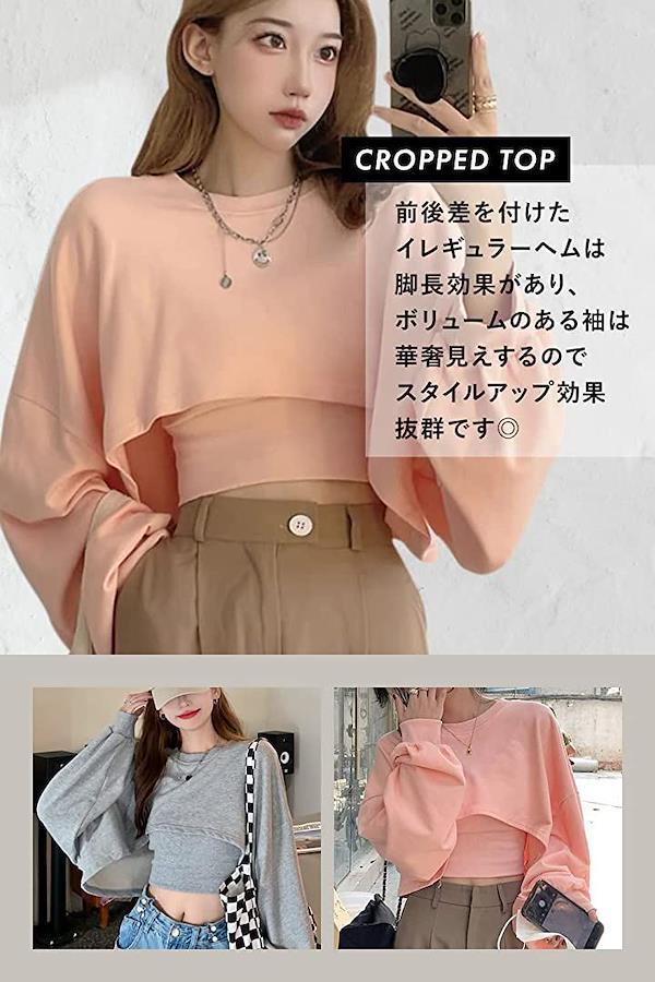 ⭐ポイント(1):オーバーサイズのロンTをカットしたようなデザインはこなれ感の出るゆったりシルエットも魅力です。