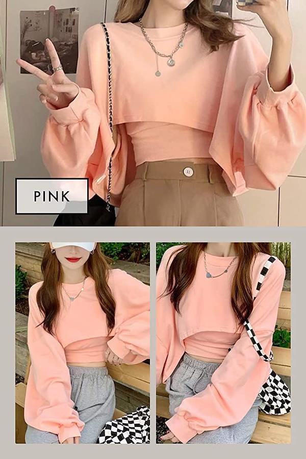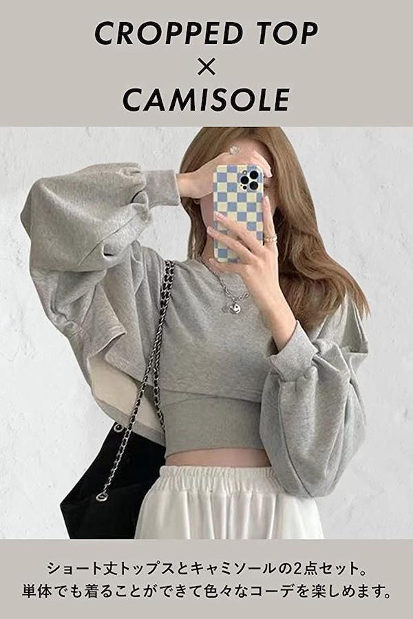 ⭐デザイン:ハイウエストのボトムスと合わせてシルエットを楽しめるショート丈のトップスとキャミソールの2点セットで可愛く、セクシーです*