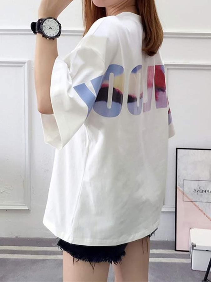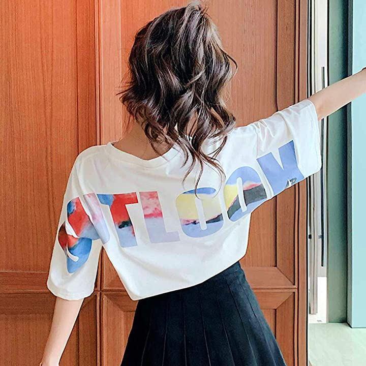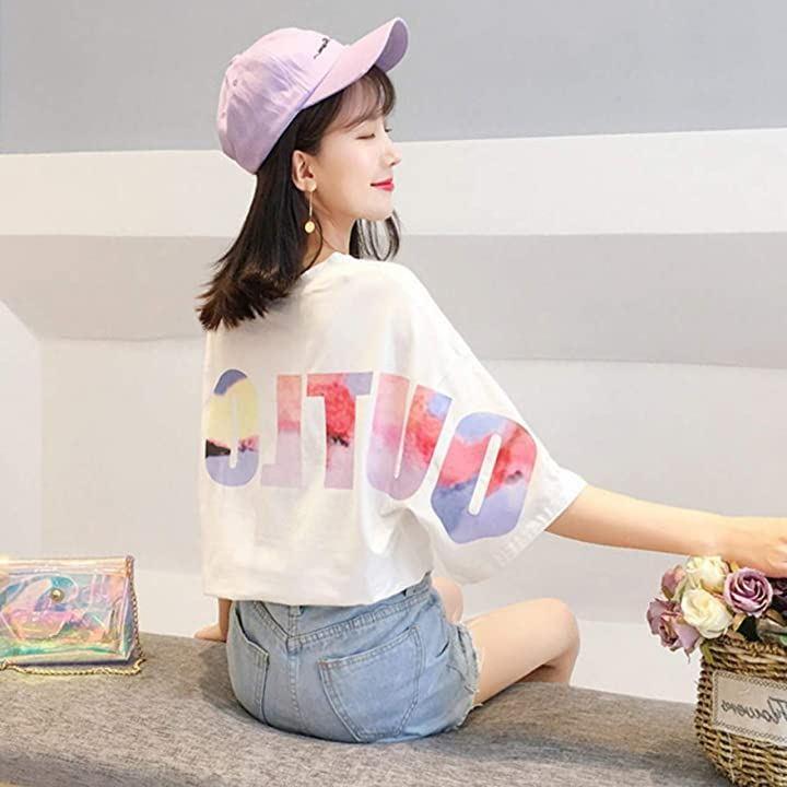 「[ブブオーハナ]Tシャツ半袖ゆったりカジュアルトップスロンTカットソーレディース」