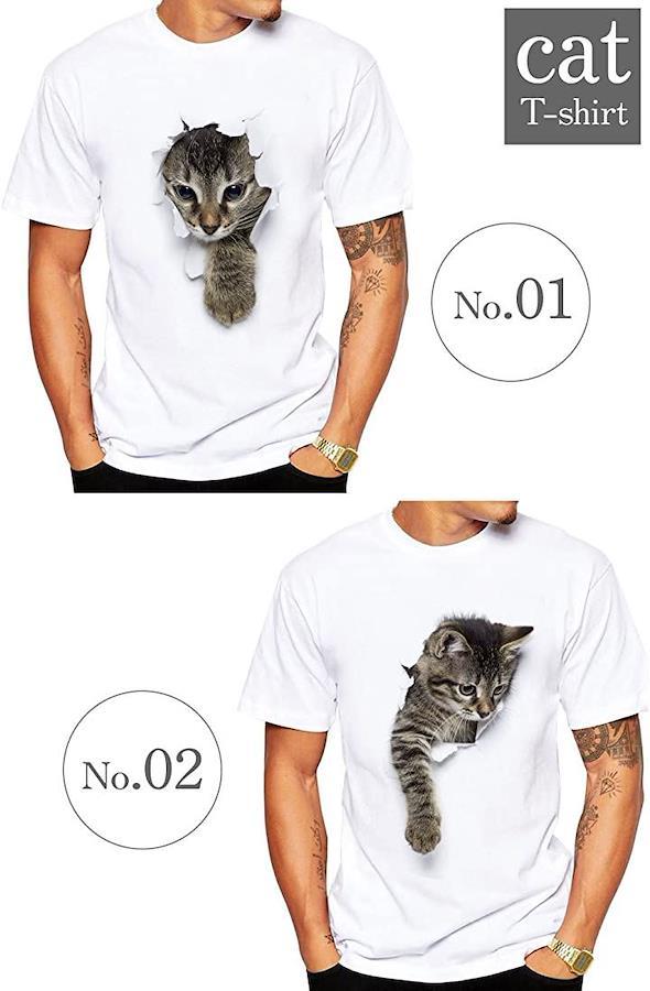 (RONGUI) Tシャツ 猫 おもしろ トリックアート カジュアル シンプル ブラックネコ
