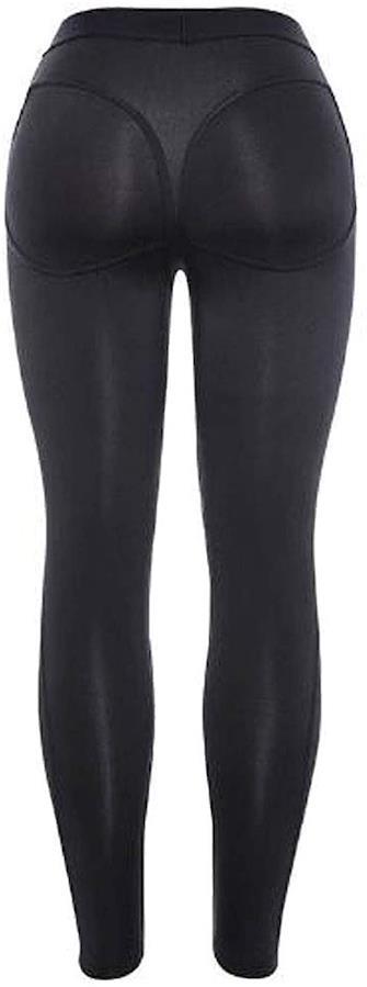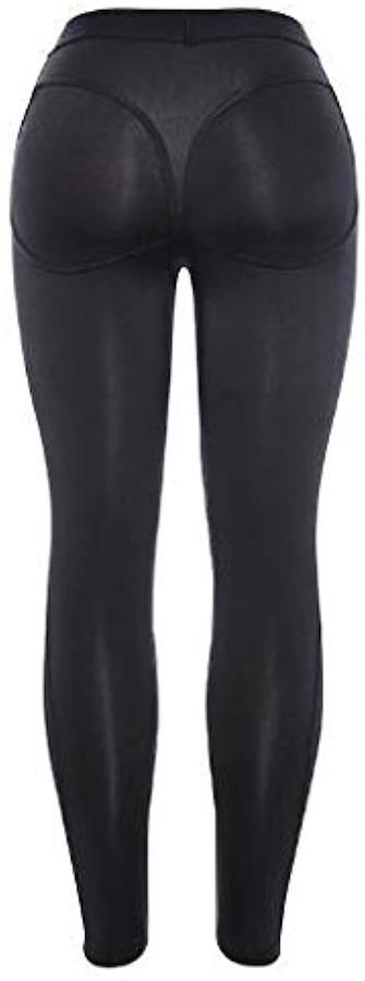 Tバック柄 伸縮 ストレッチ素材 美尻 美脚 レギンス ジム ヨガ ウエイト トレーニング パンツ Black