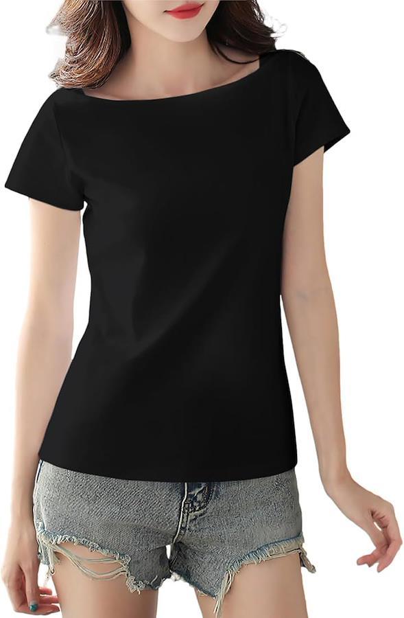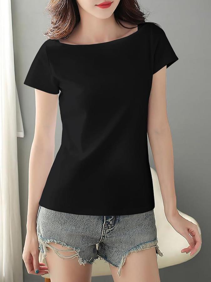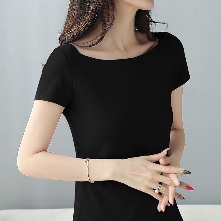 開きすぎないボートネックのデザインが、デコルテをすっきりと見せます。