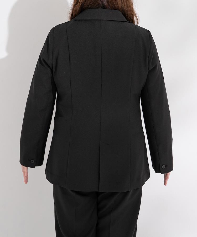 体型に合わせたフィット感を実現。3Lから6Lのサイズ展開があり、セットアップとして他のアイテムと合わせることで、洗練されたスタイルを楽しめます。