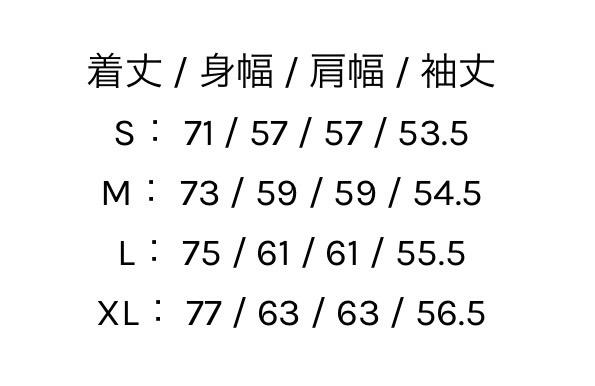 着丈/身幅/肩幅/袖丈L : 75/61/61/55.5