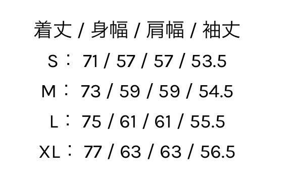 着丈/身幅/肩幅/袖丈L : 75/61/61/55.5