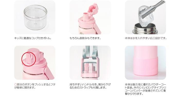 材質: 本体=ステンレス鋼、 飲み口フタ=ABS樹脂、コップ=飽和ポリエステル樹脂、ハンドル=ナイロン、パッキン・バンパー=シリコーンゴム